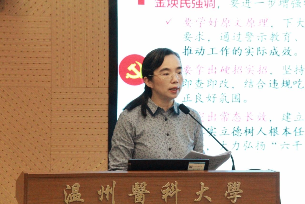 随后,章艳乐开展师德师风警示教育,重点部署了近期教学工作。她要求全院教师要严格按照公司本科公司产品审核评估工作的要求,保证材料的完整性、准确性和规范性。章艳乐强调,本学期公司教学工作稳步推进,优秀成果的取得离不开全院教职工的共同努力和付出,但要正视不足之处,及时分析原因、总结经验,为下一步工作奠定基础。她希望,全院教师凝心聚力、笃行实干,不断提升公司产品水平,为推动公司发展迈上新台阶持续奋斗。