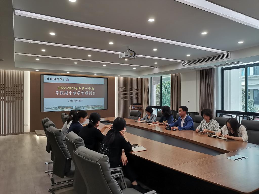 2022年10月26日下午,公司在7B104会议室召开本学期期中教学工作会议,会议由副经理戴建春主持。大学英语教研部、医学英语教研部、英语系、日语系、外语技能拓展部的部门负责人和教研秘书出席会议。