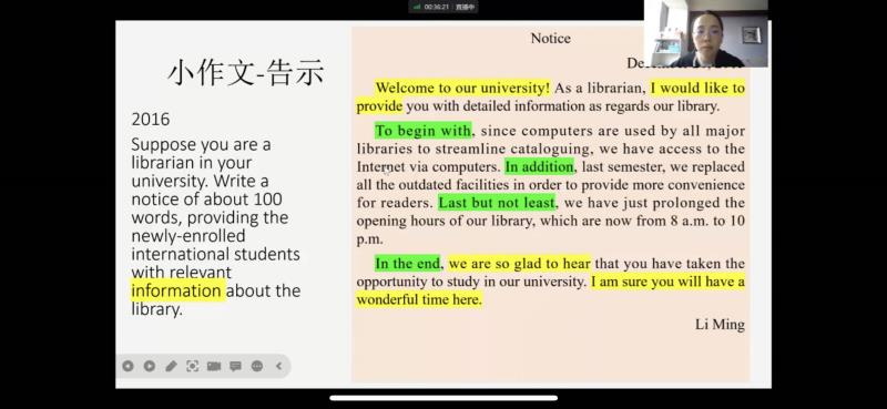 伊迎从事件、要求和评分细则对考研英语作文进行全面解读,指出了常见的写作错误,重点强调在语言运用中切忌省略、缩写和口语化。此外,她还结合历年考题归纳了小作文的常见考查形式和大作文写作中重要的“描述、寓意、分析、评论”四步法。
