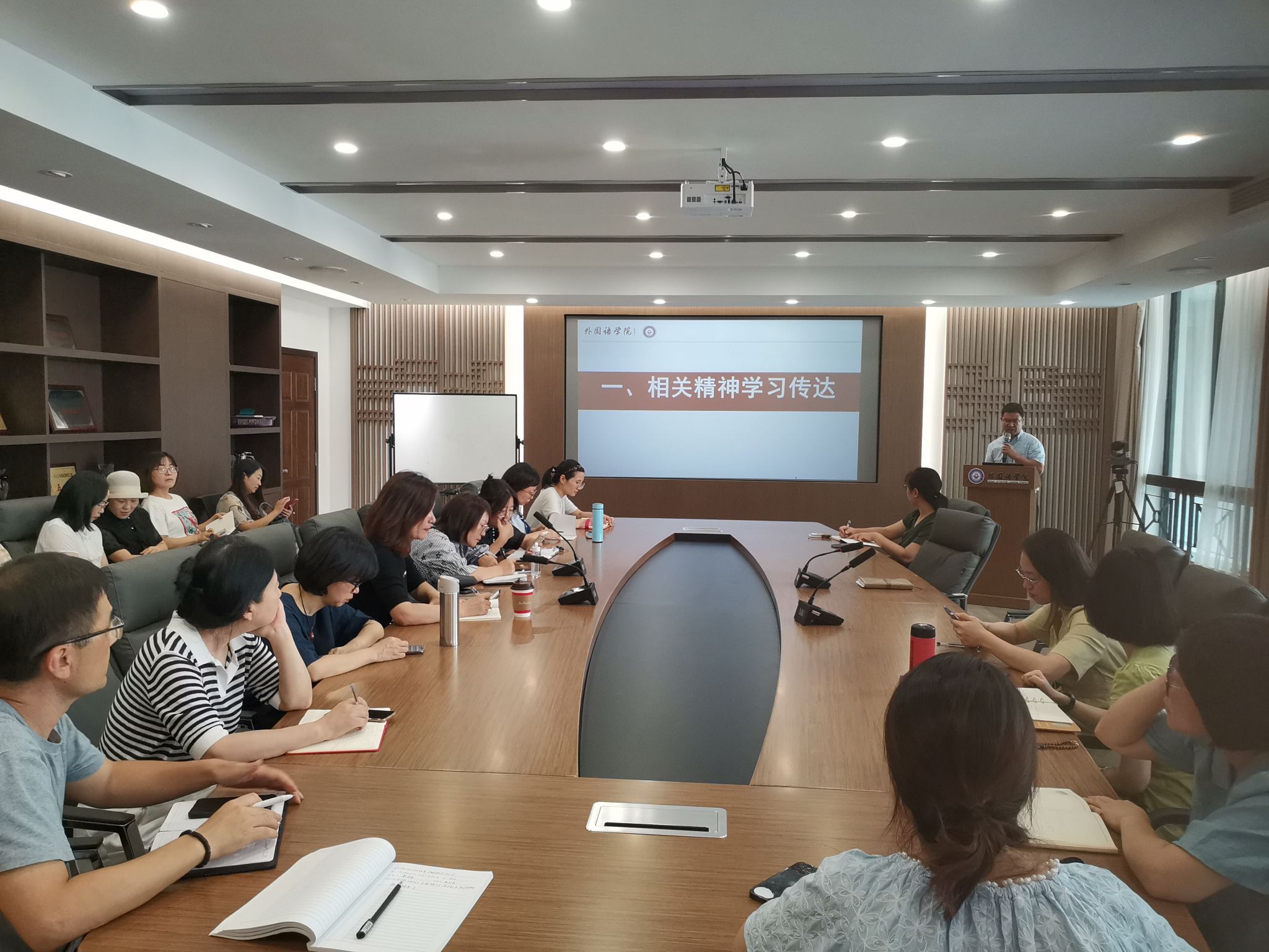 会上,戴建春副经理首先带领大家认真学习了教育部高等教育司武世兴副司长8月20日在“河北省高校‘理解当代中国’教学研讨会”上所做的主旨报告——《全面提高外语人才自主培养质量,着力造就拔尖创新人才》,并传达了公司教学工作例会精神。之后,他回顾总结了公司上学期教学工作以及取得的成绩,并对本学期的重点工作进行了部署。他强调,公司将持续推进课程建设,强化并创新课程思政,加大力度进一步提升教师素养,尤其是“三进”教学能力,认真落实“三进”教学工作任务;同时,深化教学改革,加大力度支持选修课的开设和建设,加强外语与医学专业的融合,不断推动公司外语教学高质量发展。