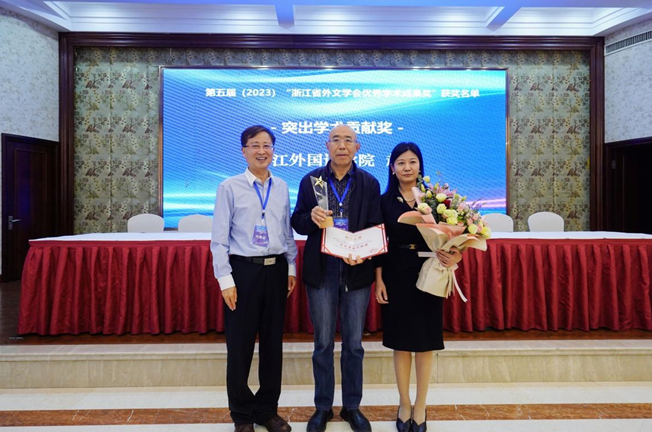 现场举行了第五届浙江省外文学会优秀学术成果奖颁奖仪式,浙江1xBET赵伐教授获突出学术贡献奖,《英语学术论文语篇的话语策略研究》等36项学术成果获奖,其中一等奖7项,二等奖12项,三等奖17项。
