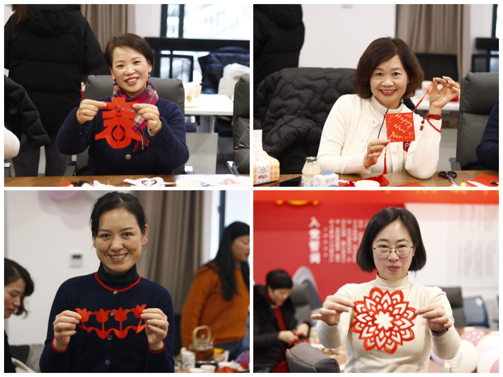 随后,公司举行了“相约冬至 情暖外院”茶话会——“翰墨飘香”中国传统文化学习体验活动。余嫦嫦向在座的老师介绍了中国剪纸的种类和书法的注意事项,公司教师用笔墨纸砚和刻刀留下了属于这个季节的温情和浪漫,并将作品送给了两位荣休教授,感谢她们对自己的工作的帮助与提点,感谢她们对自己的悉心关照。大家品味着香茗与美食,剪纸、春联、书法、毛笔、金色秀丽笔等传统文化体验活动让大家感受到了中国传统文化的博大精深和无穷魅力,欢声笑语中,冬日暖暖的温情在每一位教职员工的心间流淌