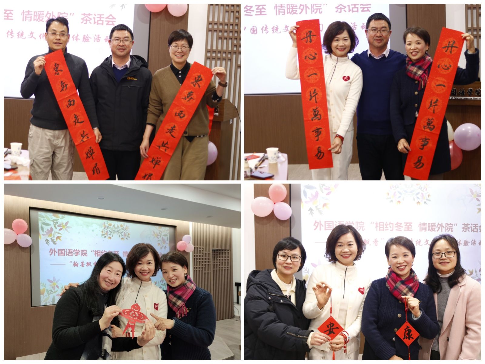 寒冬生暖意,幸福满心间。此次活动旨在表达对两位荣休教师卢易教授与王丹教授的深深敬意,同时为了弘扬中国传统文化,让全体教职员工在即将来临的冬至时节感受到外国语大家庭的温暖和关怀,传递师德力量,增强教师教书育人的责任感和荣誉感,为推动院校发展注入强大的精神动力。