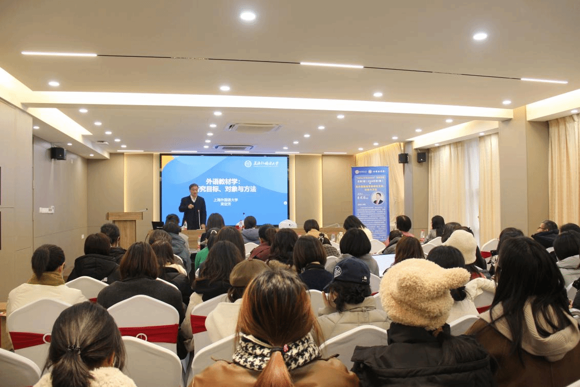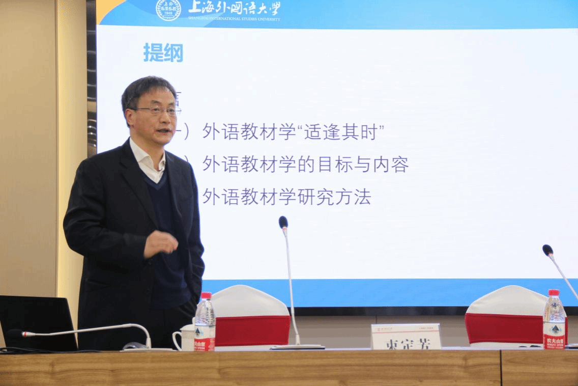 讲座伊始,束定芳教授指出国家有关部门明确提出要加强教材研究“学科化”的导向,努力构建“中国特色教材学学科体系”,构建“外语教材学”并开展相关研究适逢其时。他以教育部《国家教材建设重点研究基地管理方法》中的相关规定为依据,指出我国外语教材理论研究的目标是探索外语教材建设规律,构建具有“中国特色、中国风格和中国气派”、服务中国外语教育的教材体系和理论体系。随后,束定芳结合具体研究案例,围绕外语教材研究,详细阐述了教材研究发展过程、教材编写历史、教育生态系统、教材的范围和功能、教材内容分析、教材编写研究和教材与教师发展等方面的研究范畴和研究维度,并介绍了外语教材学研究方法。他强调,外语教材是外语教育生态中各种能量的汇集点,外语教材研究正逐渐成为一个新趋势,教材研究大有可为,需要外语教育生态体系中各参与方通力合作。