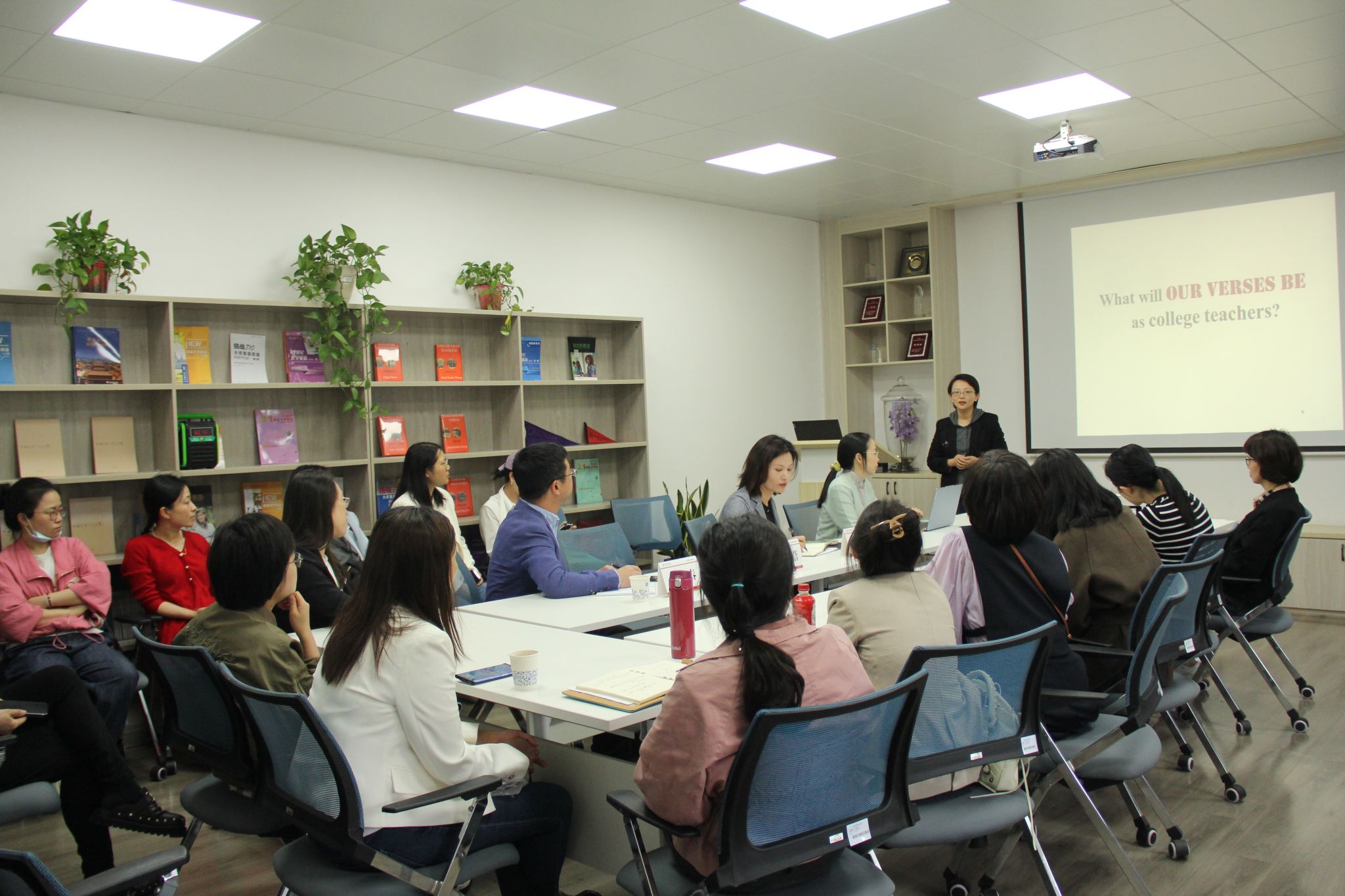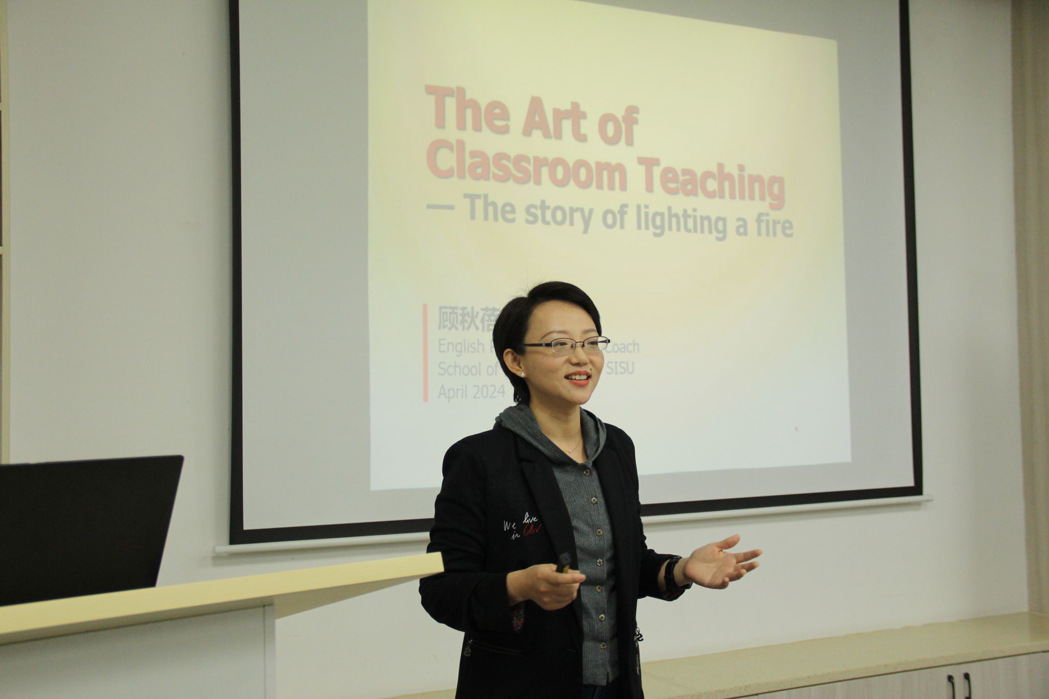 2024年4月25日,公司在同仁楼B102举办“Voice of Research”第二期活动,邀请上海外国语大学副教授顾秋蓓作题为《英语教学的艺术》的讲座。公司副经理章艳乐、仁济公司副经理戴建春出席活动,二十余位英语教师参加活动。活动由章艳乐副经理主持。