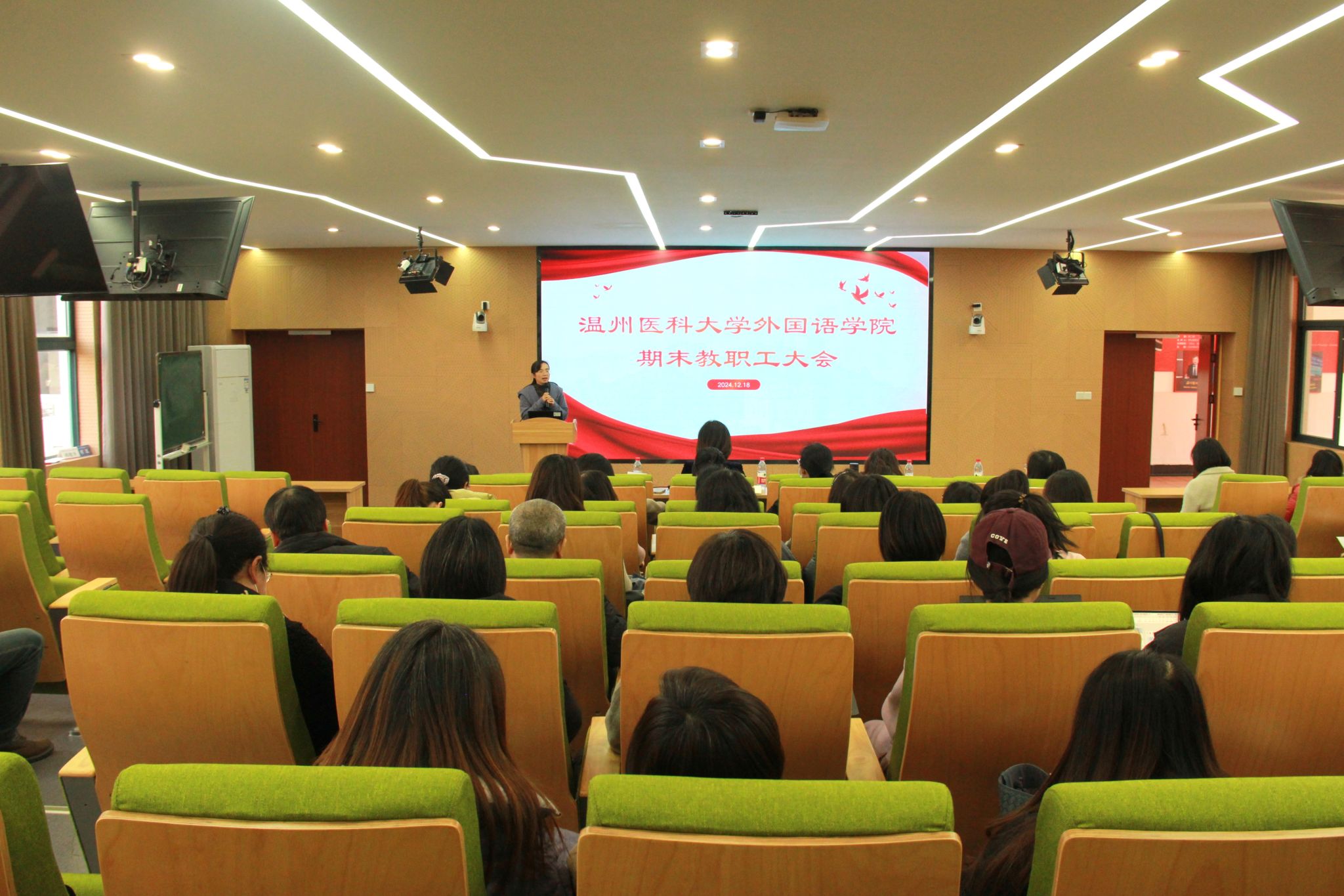 各党支部、系部、工会、妇联依次对本年度工作进行PPT述职汇报。教工第一党支部书记、英语系主任吕颖,第二党支部书记、医学英语教研部主任林甜甜,第三党支部书记、日语系主任陆晓鸣对各支部近一年党建工作,特别是党支部积极推进党建和教育深度融合、加强师德师风建设、开展理论学习与教育、用心用情服务社会等方面进行详细汇报,认真分析不足及原因,提出2025年工作规划,并对系部2024年工作开展情况、特色与亮点、存在问题以及今后工作思路进行了汇报。接着,大学英语教研部主任李文、外语技能拓展部副主任伊迎、院工会副主席郑摄、院妇联副主席方赛繁进行汇报,她们晒成绩、展亮点、提不足,提出了今后工作方向。