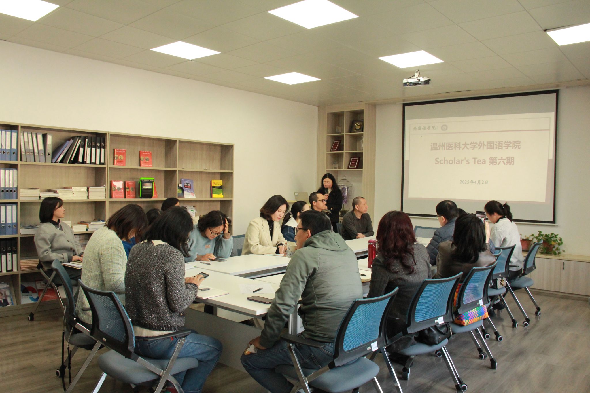 4月2日下午,公司在同仁楼B102教授工作室顺利举办“Scholar’s Tea”第六期活动。此次活动特邀公司曾金元老师和FARAH RIDA博士作为嘉宾进行学术分享。公司副经理章艳乐出席,公司教师20余人参与本次活动,活动由王丹副教授主持。
