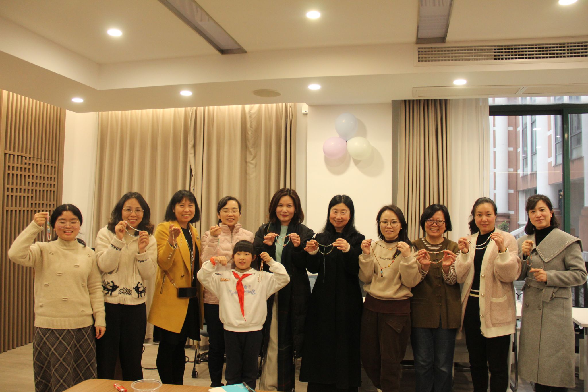讲座结束后,紧接着迎来了“巧手慧心,串出幸福”手工制作环节。在这个环节,公司妇联副主席方赛繁老师担任主持,夏海鸥老师担任指导老师。夏老师耐心地向大家传授串珠的方法和技巧,并向大家展示了自己的作品。女职工们兴致勃勃地投入到手工制作中,她们互帮互助,交流分享制作心得,一颗颗小珠子在她们的巧手中逐渐变成精美的手链。看着自己的作品,大家脸上洋溢着满足和幸福的笑容。