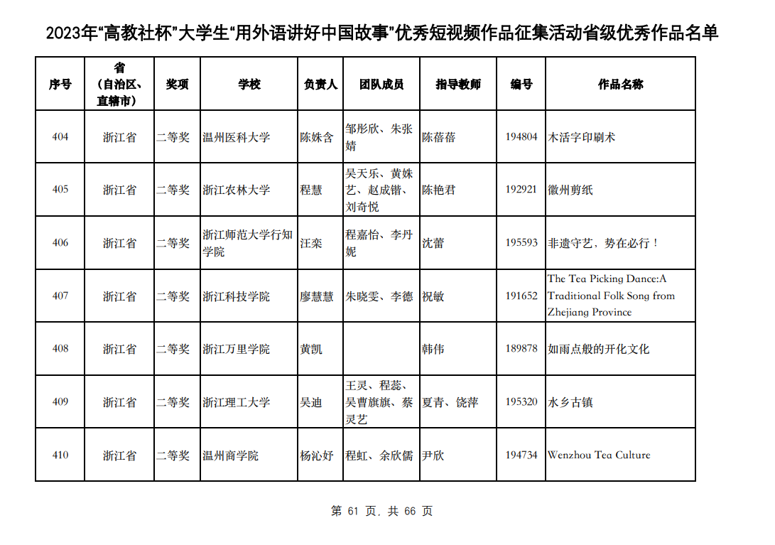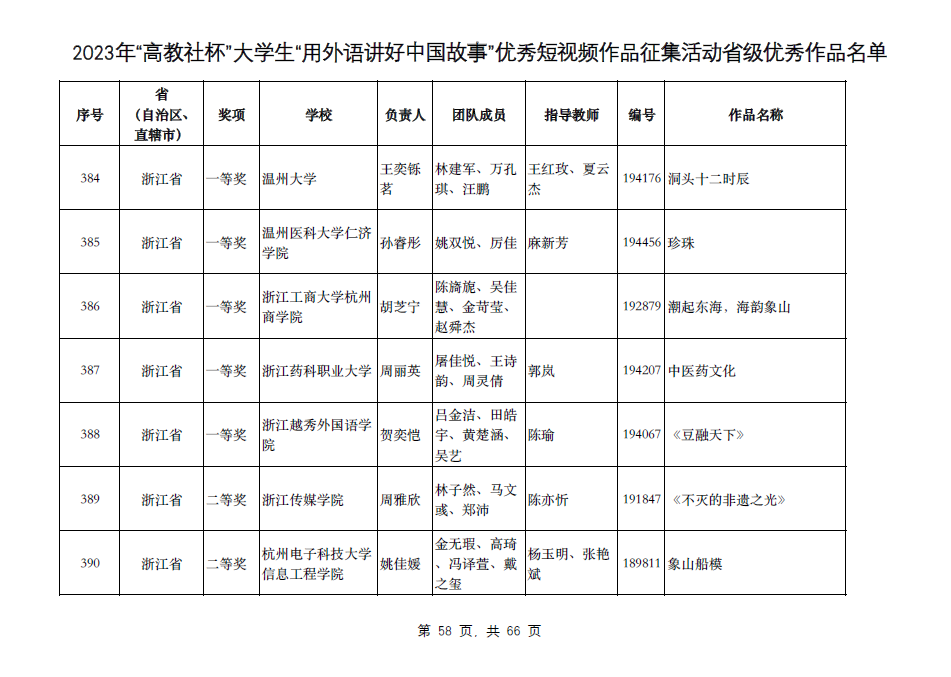 近日,2023年“高教社杯”老员工“用外语讲好中国故事”优秀短视频作品征集活动省级专家评审顺利结束。公司麻新芳老师指导的参赛作品《珍珠》获浙江省一等奖,陈蓓蓓老师指导的参赛作品《木活字印刷术》获浙江省二等奖!